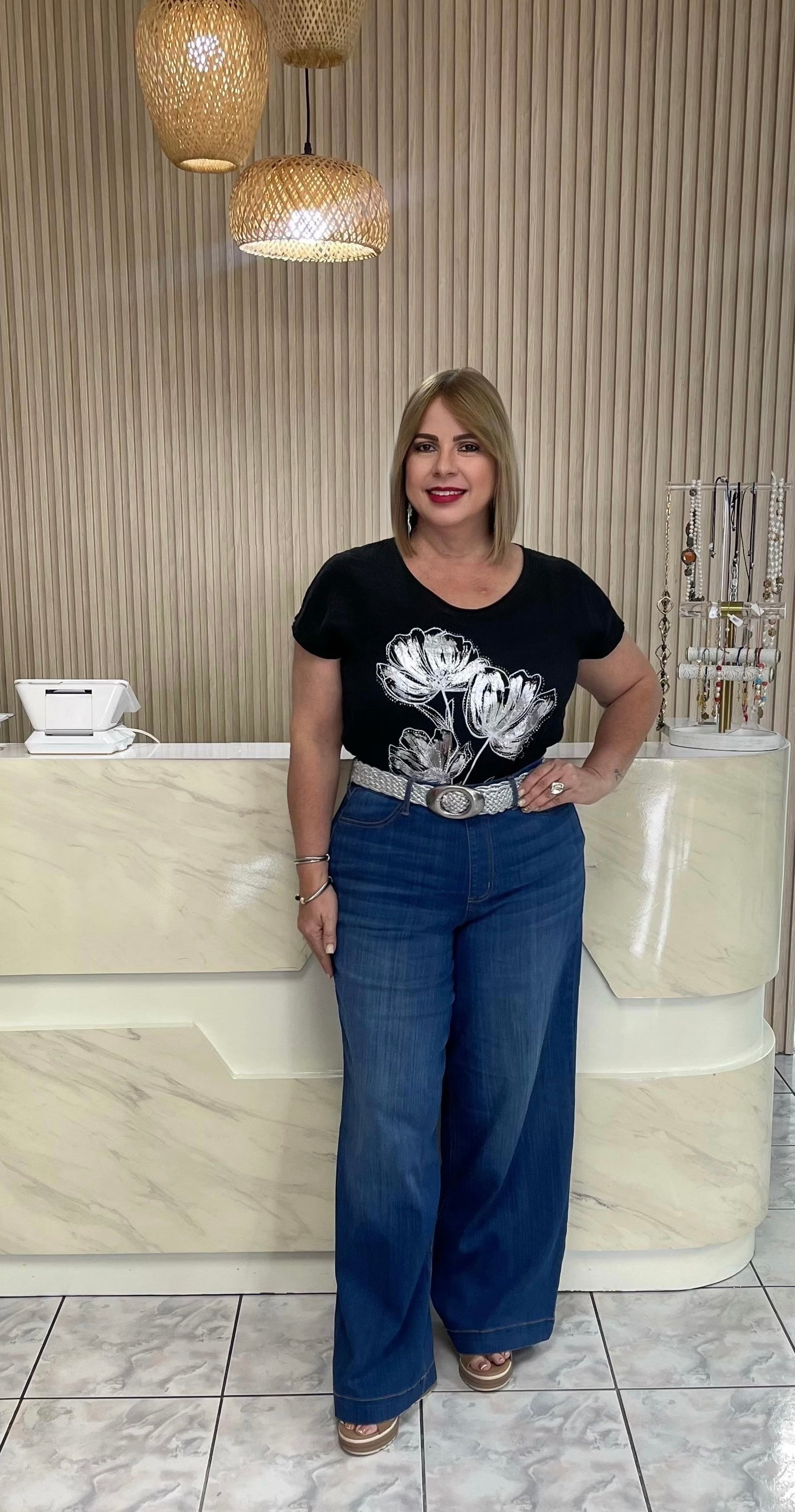 The Black & Flower Silver Plus Italian Top is crafted from high-quality Italian linen, offering exceptional comfort and breathability. Its plus size design ensures a flattering fit for diverse body types, making it a versatile addition to your wardrobe. Ideal for both casual and formal occasions, it combines elegance with practicality.