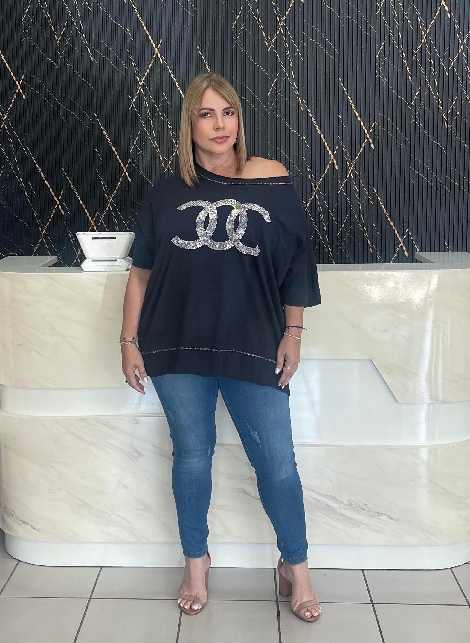 Elevate your style with our navy blue Italian plus top! Made with quality spandex and featuring the latest Italian trend, this top effortlessly combines fashion and comfort for a casual yet chic look. Perfect for plus size individuals, it's a must-have addition to your wardrobe.