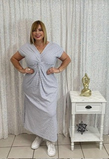 Introducing our Plus Long White Suit with Blue Lines! Made from comfortable spandex fabric, this suit is perfect for all-day wear. And with its size-plus option, anyone can rock this stylish look with confidence. Add a touch of comodo to your wardrobe today!